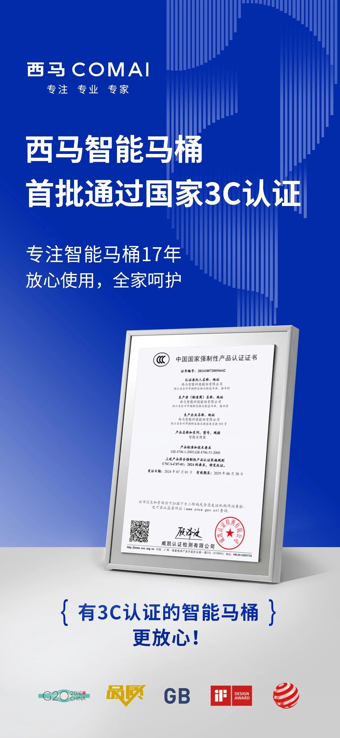西馬智能馬桶首批通過國(guó)家3C認(rèn)證